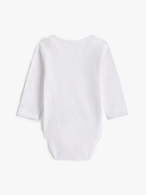 Este body de manga larga, confeccionado en punto de algodón elástico aterciopelado, presenta botones a presión y un cuello con pliegue envolvente para vestirlo con facilidad.