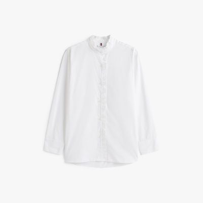 Camisa amplia con tapeta y cuello de volantes