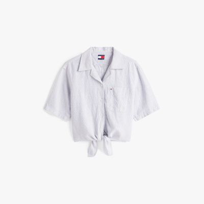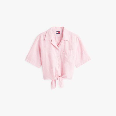 Ideal para completar conjuntos de trabajo o fin de semana, esta camisa amplia de manga corta cuenta con un corte cropped y es una prenda muy fresca.