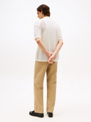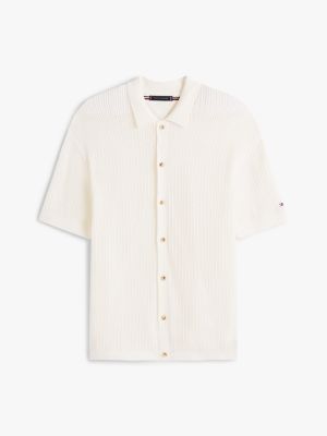 Esta camisa de manga corta y corte amplio, confeccionada en puro algodón, presenta un diseño texturizado en punto calado, ideal para looks informales.