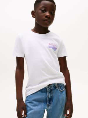 Esta camiseta de puro algodón luce un atrevido logo de Tommy Hilfiger NYC en la parte delantera con un moderno efecto relieve de estilo grafiti.