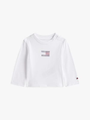 Esta camiseta de manga larga, confeccionada en punto de algodón elástico, es una prenda básica ideal para mantener cómodos a los más pequeños en los días más fríos.