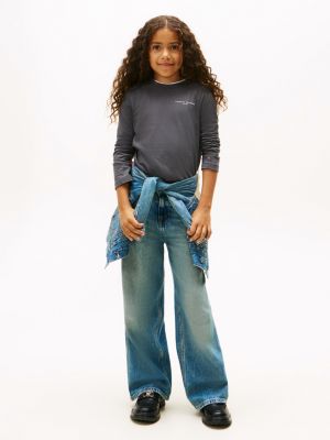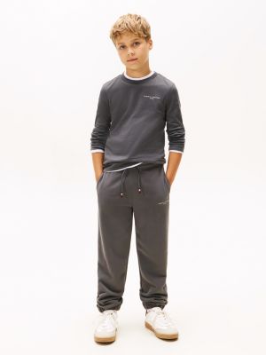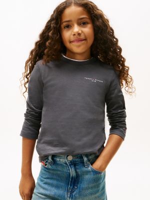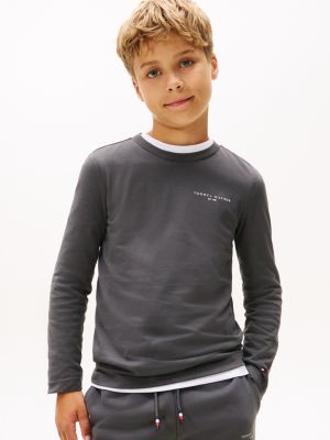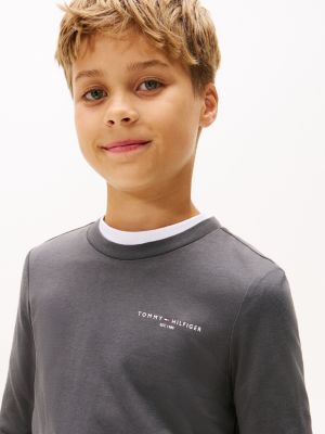 Esta camiseta de manga larga, confeccionada en punto de puro algodón, presenta un cuello redondo, un bajo recto y varios discretos detalles distintivos de Tommy Hilfiger.