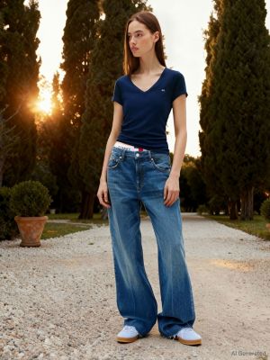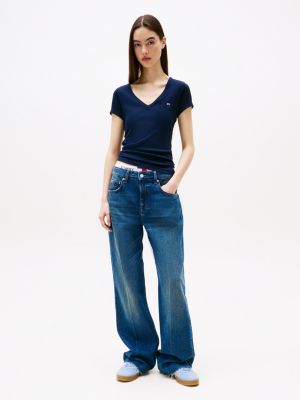 Favorecedora e informal, esta camiseta de corte slim está confeccionada en algodón elástico y presenta un pronunciado cuello de pico.