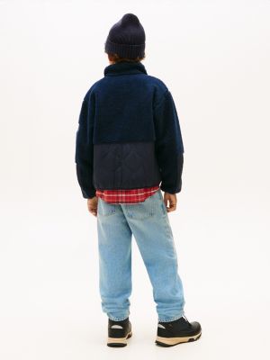 Esta cálida cazadora bomber amplia en tejido de peluche, ideal para los días fríos, presenta un diseño informal de hombros caídos y paneles acolchados.