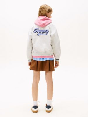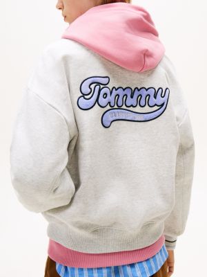 • Aplicación de Tommy Hilfiger con diseño universitario en el pecho