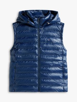 Este chaleco ligero y brillante, que repele el agua, presenta un relleno de plumón cálido y se completa con una versátil capucha extraíble.