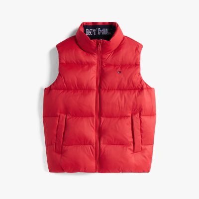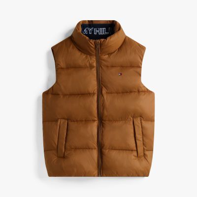 Este práctico chaleco acolchado, perfecto para entretiempo, mantiene el cuerpo abrigado y deja los brazos libres para moverse con comodidad.