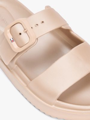 Estas chanclas moldeadas, que ofrecen una alternativa moderna para la playa o la piscina, incorporan un discreto logo en la tira ancha.