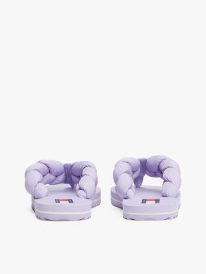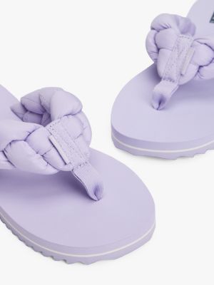 Estas chanclas, ideales para cualquier look playero, presentan una suela dentada y unas tiras acolchadas trenzadas que les aportan un toque moderno.