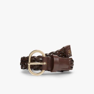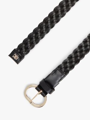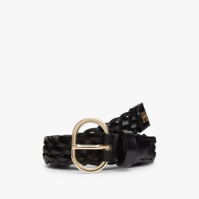 Este cinturón clásico, confeccionado en piel colada trenzada, presenta una hebilla metálica ovalada y una insignia a juego del monograma TH en el extremo.