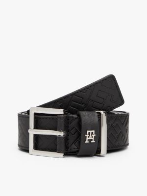 Este refinado cinturón, perfecto para realzar looks semiformales, incluye un diseño integral del monograma TH con pespuntes y una insignia metálica a juego en la trabilla.