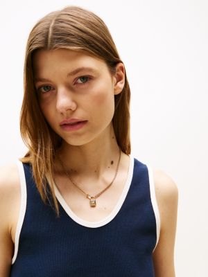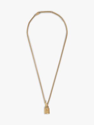 Realza tus looks elegantes con este collar de eslabones, elaborado en brillante acero inoxidable chapado en oro y decorado con un refinado colgante en forma de candado.
