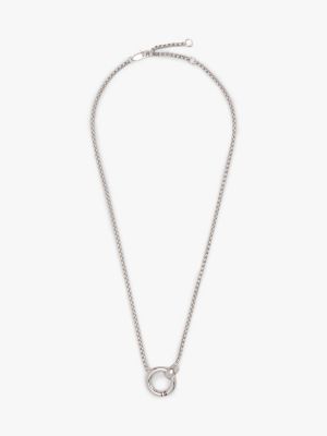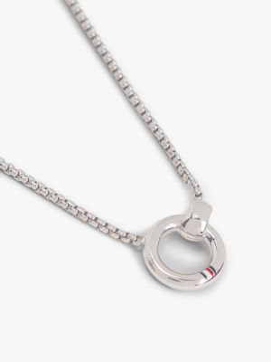 Este collar de acero inoxidable con colgante circular luce elegantes detalles distintivos esmaltados y es perfecto para combinar con un conjunto de noche.
