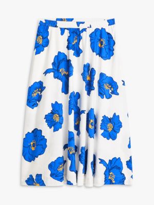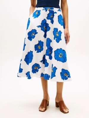 Esta falda midi plisada de corte evasé, confeccionada en mezcla de lino ligero, luce un logo metálico distintivo y es ideal para los días cálidos.