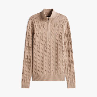Jersey de punto trenzado con media cremallera
