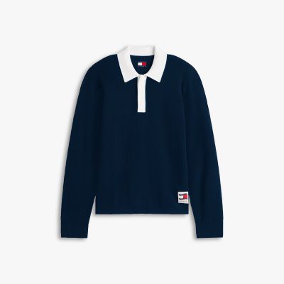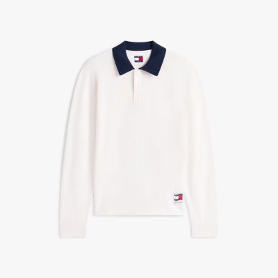 Este jersey de rugby combina detalles deportivos e informales, como el cuello de punto a contraste, la tapeta oculta y los acabados de punto elástico.