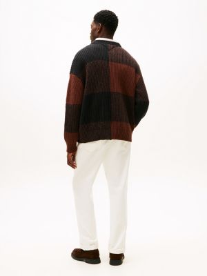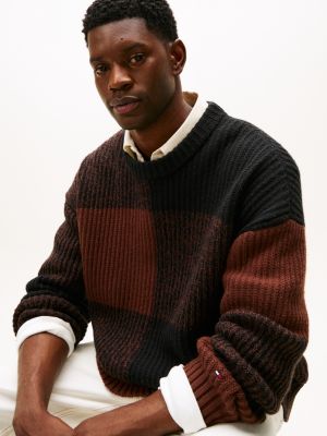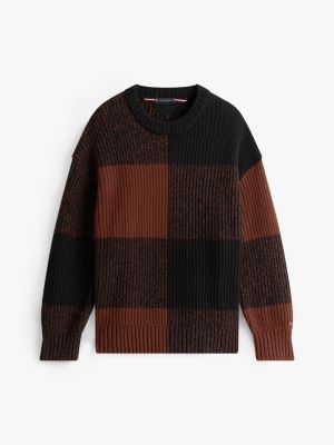 Este jersey, confeccionado en mezcla de lana y algodón, luce un diseño clásico de cuello redondo y un atemporal estampado de cuadros.
