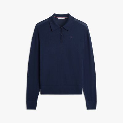 Este jersey tipo polo, una prenda versátil para looks tanto de día como de noche, está confeccionado en una mezcla de lana y seda de tacto suntuoso.