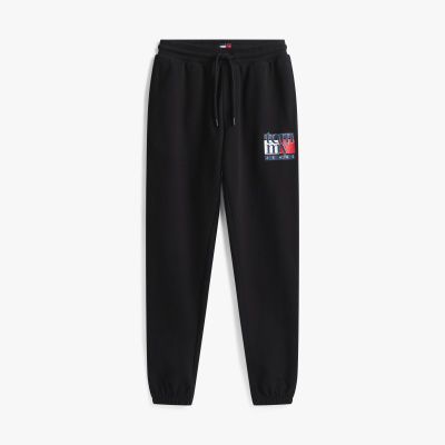 Estos joggers de corte slim, confeccionados en felpa de puro algodón con acabado aterciopelado, presentan un bajo elástico y un logo de Tommy Hilfiger en la pernera.
