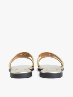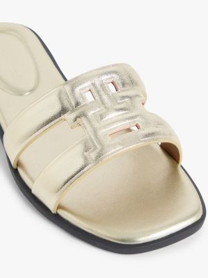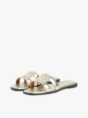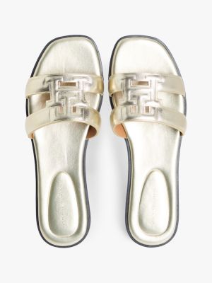 Estos mules, cómodos y glamurosos, están confeccionados en piel flexible con un acabado metalizado brillante y lucen un llamativo monograma TH en la parte delantera.