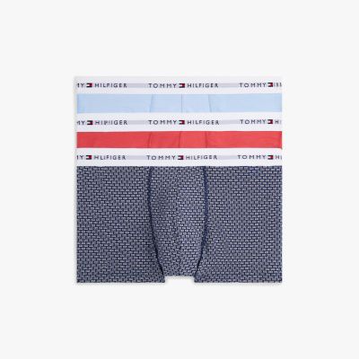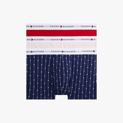 Este pack incluye tres calzoncillos Trunk con varios diseños, confeccionados en algodón elástico que absorbe la humedad y con la inscripción de Tommy Hilfiger en la cintura.