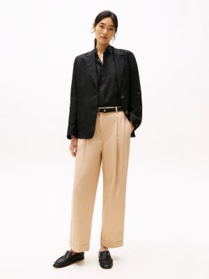 Este pantalón chino de pernera recta, confeccionado en mezcla de algodón elástico ligero, es una prenda refinada de corte amplio.