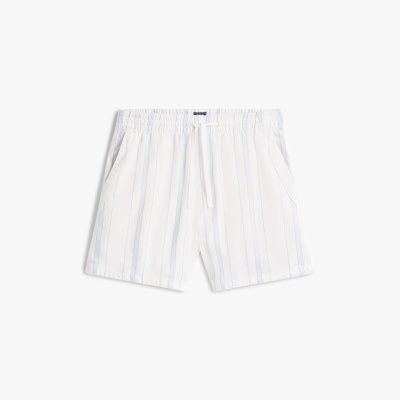Este pantalón corto con cordón ajustable, ideal para los días de playa, está confeccionado en puro algodón y luce un elegante diseño de rayas verticales, así como un parche distintivo de Tommy.