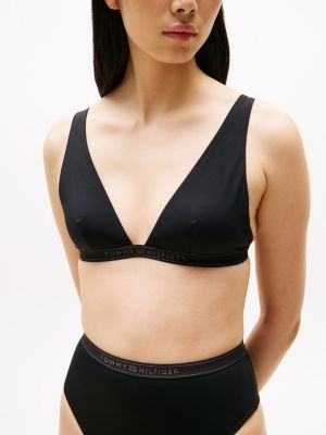 Para rematar el look, combina tu top de bikini con unas gafas de sol para mujer y unas chanclas de Tommy Hilfiger. Tanto si prefieres un look a juego como a contraste, no te faltarán opciones a la hora de elegir la parte inferior del bikini. Si quieres un dos por uno, apuesta por la versatilidad de la parte superior de bikini estilo bandeau en negro con tirantas de quita y pon anudables. El relleno es extraíble para que lo lleves como quieras.