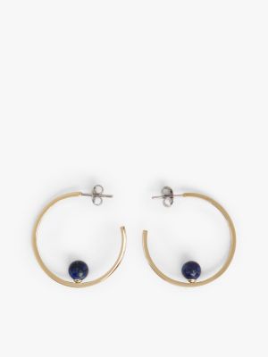Estos pendientes de aro chapados en oro se adornan con cuentas pulidas de lapislázuli semipreciosas, que les aportan un toque actual y elegante.