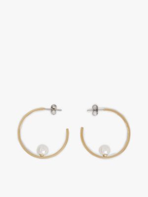Estos pendientes de aro chapados en oro con un logo en bajo relieve lucen perlas de cristal semipreciosas y son perfectos para añadir el toque final a un conjunto de noche.