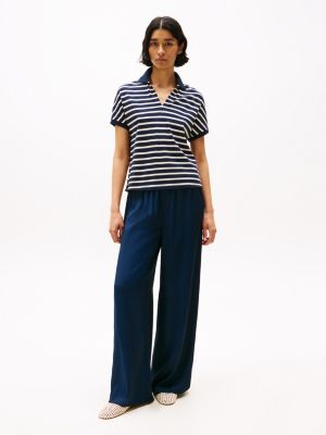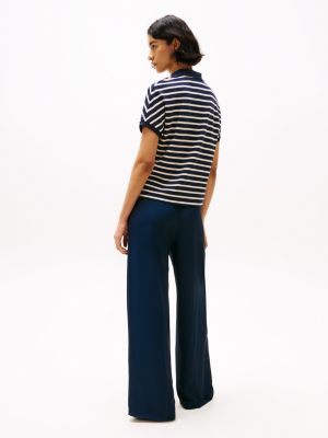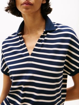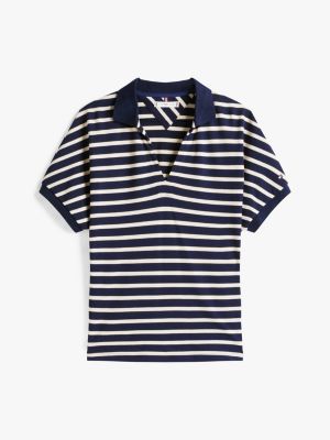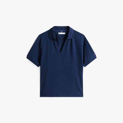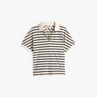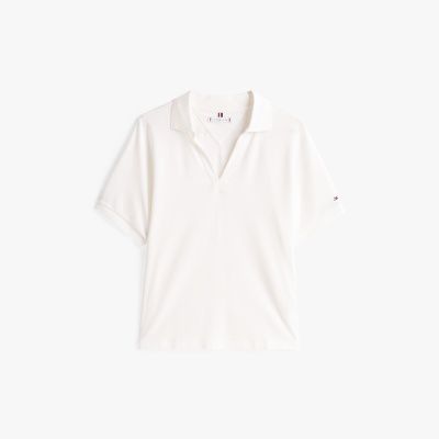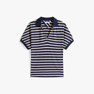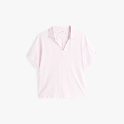 Este versátil polo de corte amplio, ideal para crear looks semiformales, se caracteriza por sus detalles distintivos y el favorecedor cuello abierto.