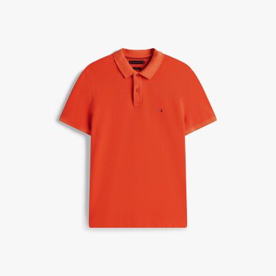 Este polo está confeccionado en un tejido de algodón teñido en prenda para darle un aspecto desgastado y luce el emblemático logo bordado.
