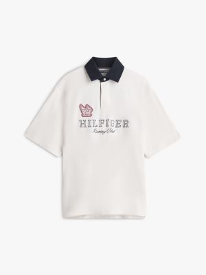 Este clásico polo de rugby de corte amplio luce un llamativo logo bordado y un cuello a contraste, que le da un toque deportivo.