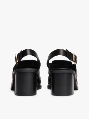 Estas sandalias de punta cuadrada y tacón ancho, ideales para las veladas, incluyen detalles metálicos distintivos.