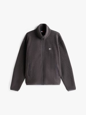 Esta sudadera con cremallera y cuello chimenea, confeccionada en tejido de peluche texturizado, es perfecta para abrigarse con comodidad.
