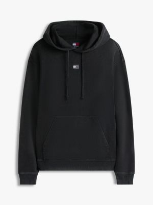 Esta sudadera de felpa con capucha, de estilo sencillo, presenta un acabado sobreteñido y detalles distintivos tonales en la parte delantera y trasera.
