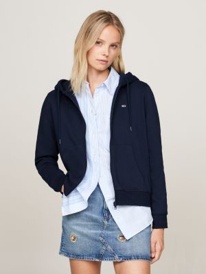 Esta sudadera, confeccionada en felpa de mezcla de algodón cepillado, presenta dos bolsillos canguro y una práctica cremallera.