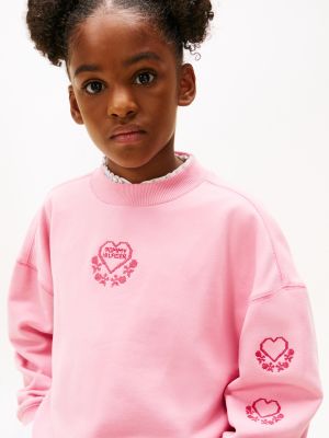 Esta sudadera de cuello redondo destaca por los logos de corazones del pecho y la manga, delicadamente bordados en punto de cruz.