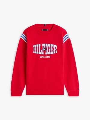Esta sudadera de felpa, ideal para hacer deporte o para los looks de fin de semana, está confeccionada en puro algodón y presenta un llamativo logo de Tommy Hilfiger y rayas deportivas en los hombros.