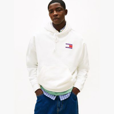 Esta clásica sudadera de rizo con capucha luce en la parte trasera unos llamativos logos inspirados en la estética de los años 90 y los deportes al aire libre.