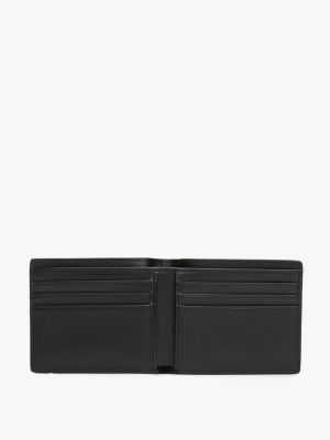 Este elegante tarjetero, confeccionado en piel granulada, se adorna con un detalle en los colores distintivos y un logo metálico.