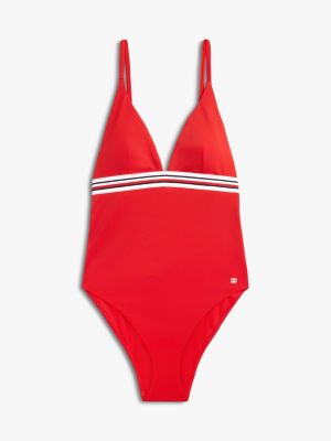 Este glamuroso traje de baño con copas de triángulo se caracteriza por el escote pronunciado y el detalle cut-out en la espalda.