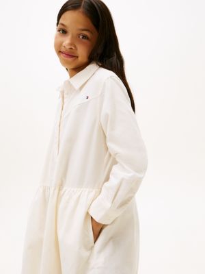 Este vestido camisero clásico está confeccionado en pana de puro algodón y es ideal para fiestas y eventos.